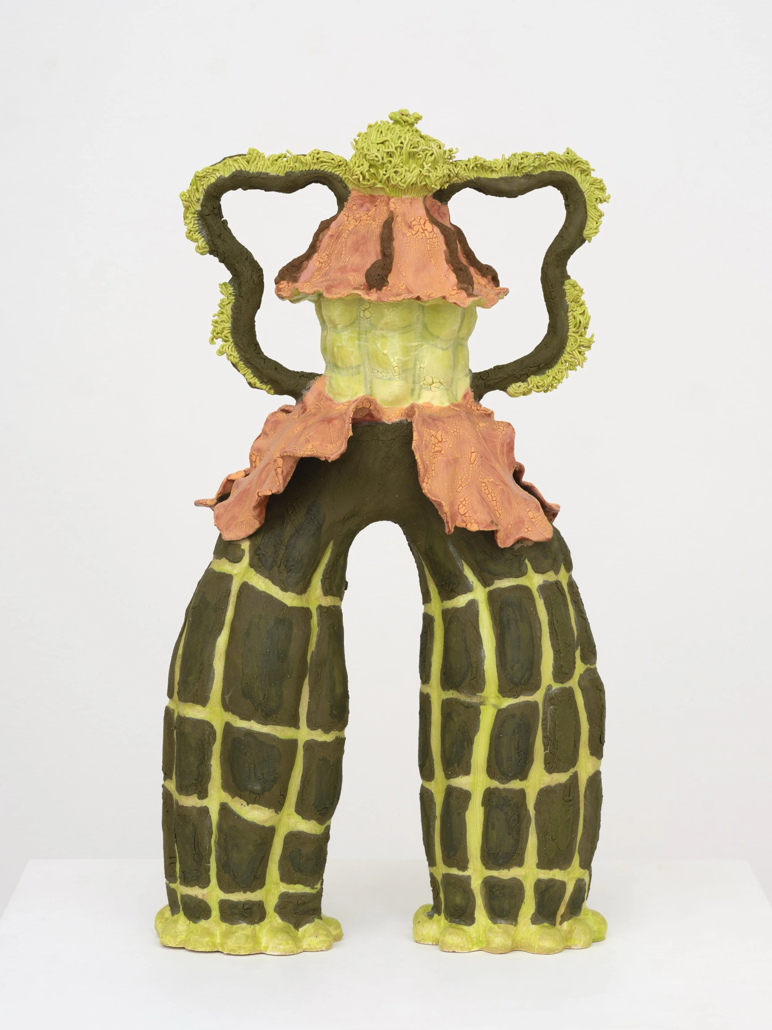 Maddy Inez utilizes ceramics and sculpture to explore themes of healing and ancestral memory, treating clay as both a medium and a metaphor for collective trauma. Her works often evoke plants known for their healing properties or mythological significance, merging the spiritual with the ecological. This approach prompts reflection on humanity's fragile yet powerful relationship with the natural world. Inez's artistic practice is deeply influenced by her matrilineal heritage; her mother, Alison Saar, and grandmother, Betye Saar, are both renowned artists whose legacies of Black feminist and spiritual artmaking resonate through her work. This lineage informs Inez's exploration of intergenerational knowledge and the transformative power of art as a means of healing and remembrance.